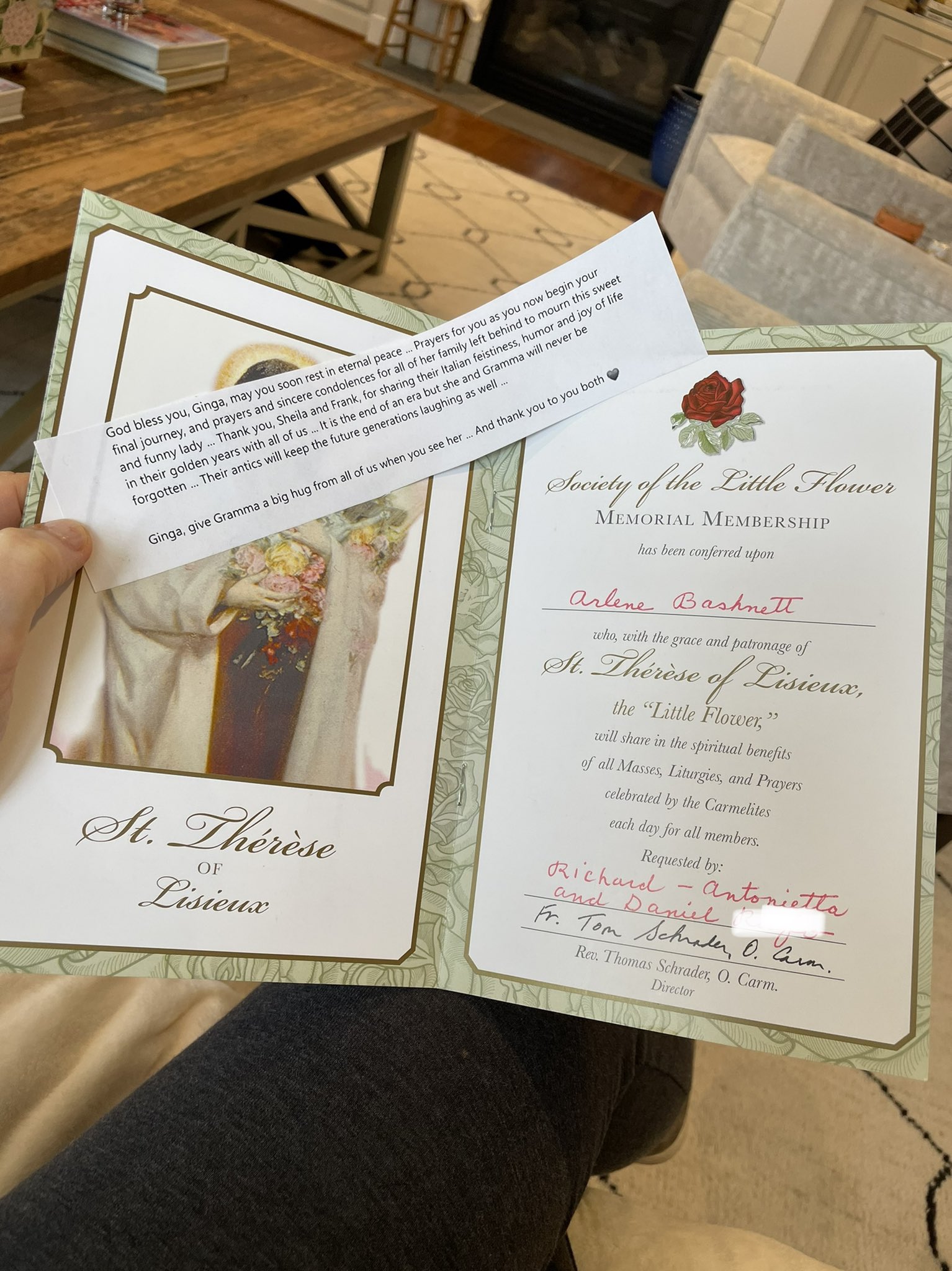A memorial mass card enrolls a deceased person in the society of the little flower for a period of five years. The Society can send a Mass card on your behalf and that person or family will.